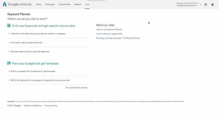 1. 點擊下面的鏈接:https://adwords.google.com/home/tools/keyword-planner/