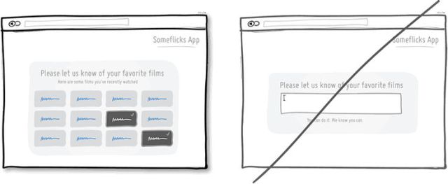 在頁面上提供一些線索可協(xié)助使用者喚起過去的經(jīng)驗(yàn),進(jìn)而提供我們更多回饋;若毫無提示,使用者則需更多的時(shí)間深入回想,反而耗時(shí)或遺漏更多資訊,就如同選擇題較填充題更快完成般。